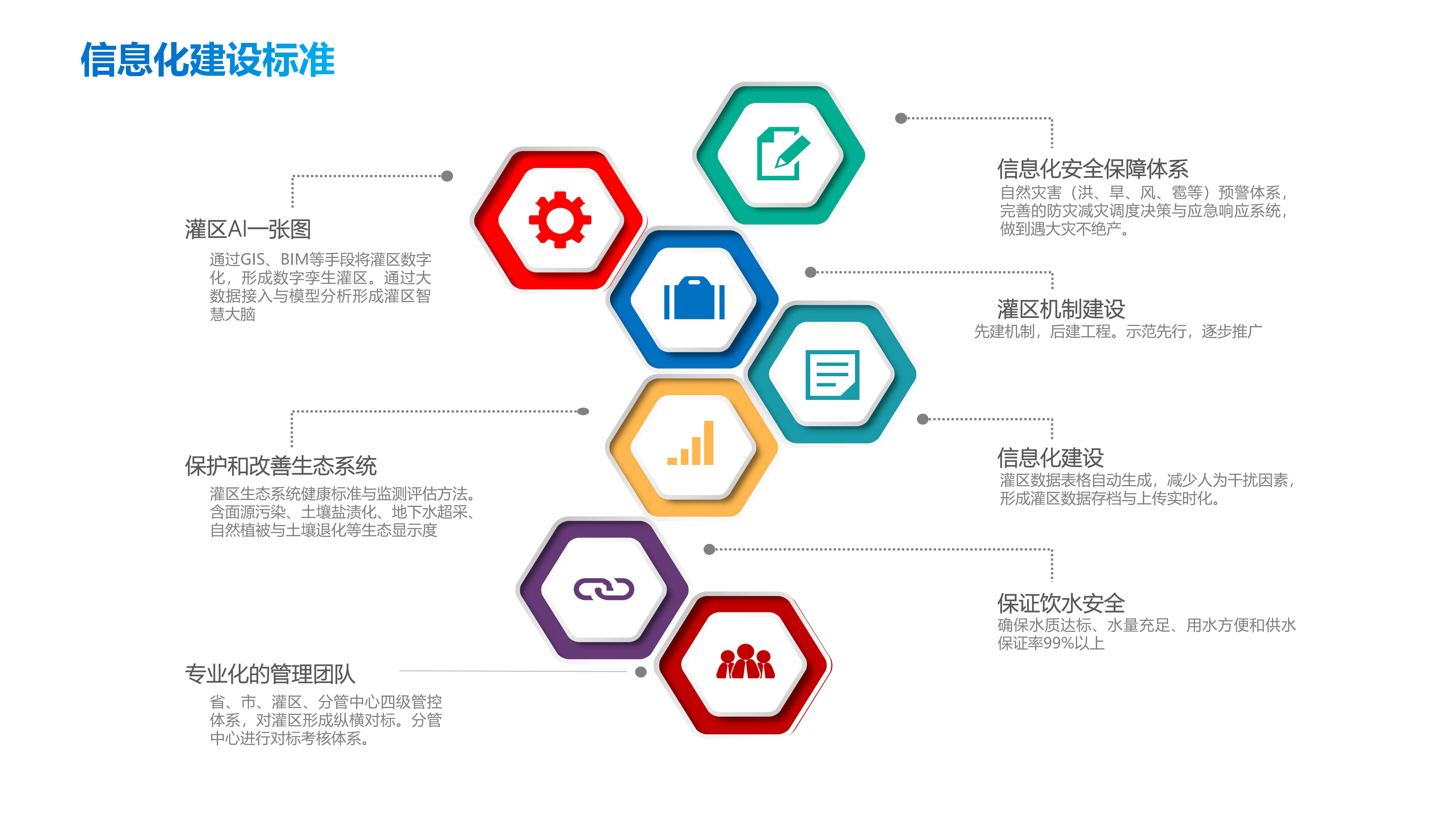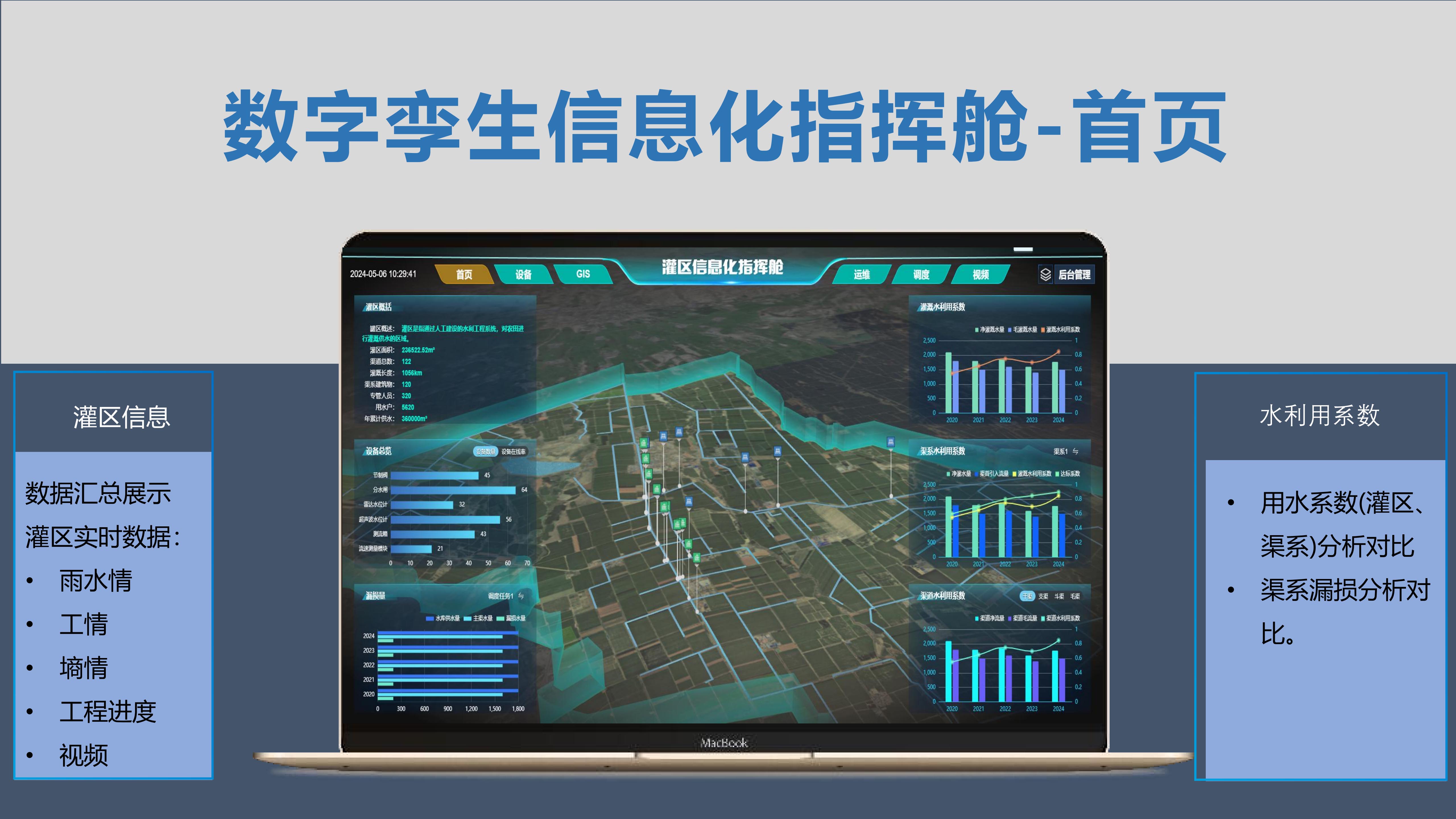 智慧灌区借物联网、大数据等技术,实现水资源调度、设施管理、需水监测等智能化,精准配水节水,自动预警故障降本,
